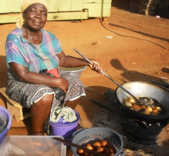 Entre deux gestes précis, alors que la pâte commence à danser dans l’huile bouillante, elle m’évoque sa famille, son histoire. « Au décès de son père, Flaubert était âgé de 19 ans. Avec quatre enfants à ma charge, sans moyens, j’ai été contrainte à prendre une décision difficile… » Elle rit en parlant de sa décision de sacrifier la scolarité de ses deux filles, Judith et Isabelle : « Elles iront en mariage », ironise-t-elle (ou pas). Ses économies, elle les a mises de côté pour Flaubert et son petit frère, Tsimi. Et ils l’ont honorée : Flaubert est titulaire d’un master en gestion et comptabilité, et Tsimi d’une licence en droit public. Notre conversation est interrompue par deux clients impatients. « Les beignets sont encore dans l’huile, ça arrive bientôt. »