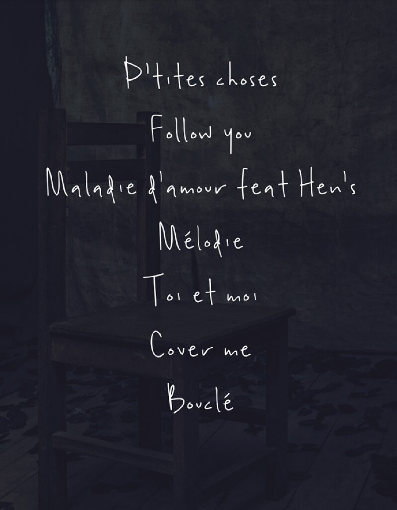 L’artiste se lance dans une déclarations d’amour à travers le titre Mélodie, parle de ces P’tite choses qui soignent la Maladie d’amour, elle pousse une note de gospel via le titre Cover me (couvres-moi) et réitère son amour à son mari dans le titre toi et moi après lui avoir dis qu’elle le suivrai partout dans le titre follow you et boucle la boucle avec le titre Bouclé.